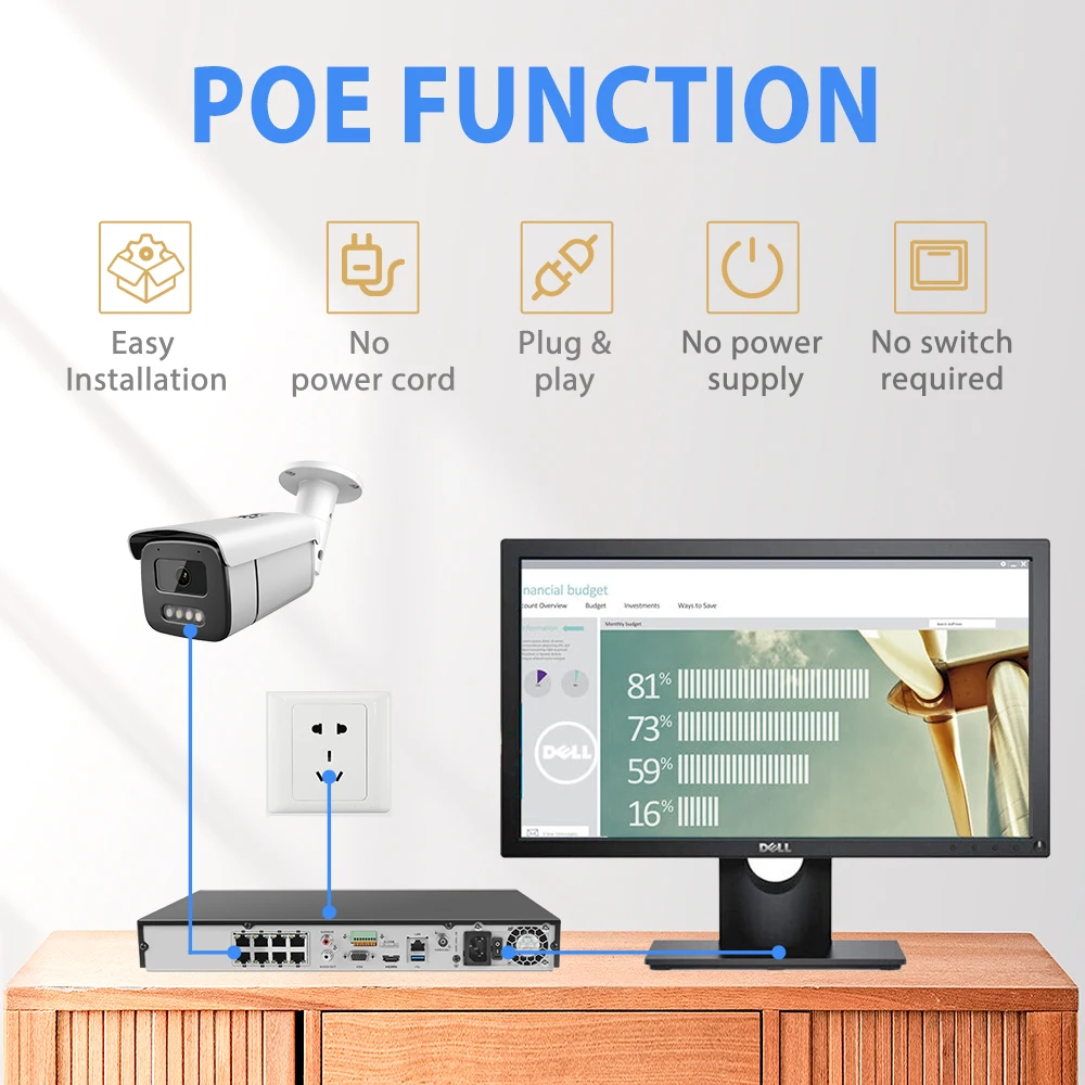 (Une vraie sécurité plug and play! Il dispose de POE (Power over Ethernet), avec un seul câble reliant chaque caméra IP au NVR pour l’alimentation et la vidéo et la transmission unique. Câblage facile-le processus de câblage ne peut pas être plus simple pour les amateurs de bricolage et les débutants)