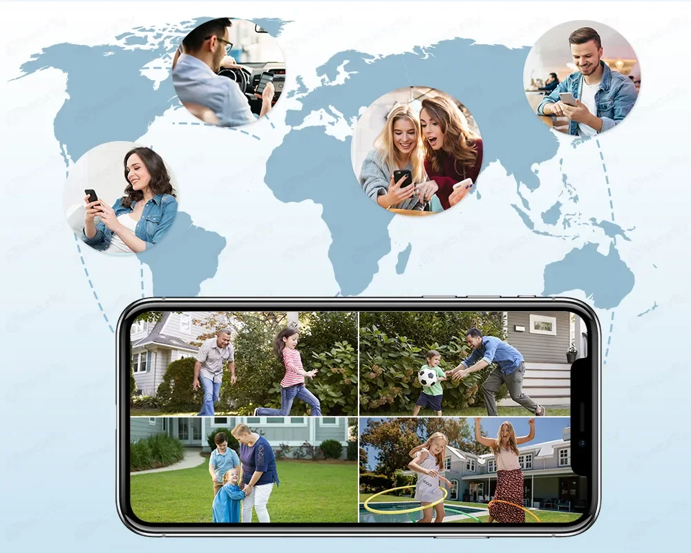 Prend en charge la vue multi-utilisateurs et multi-appareils simultanément. Vous pouvez partager votre caméra avec votre famille ou vos amis. Après le partage, ils pourront accéder à la même caméra simultanément, afin que vous puissiez profiter des grands moments ensemble.