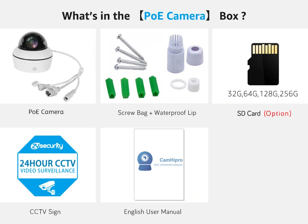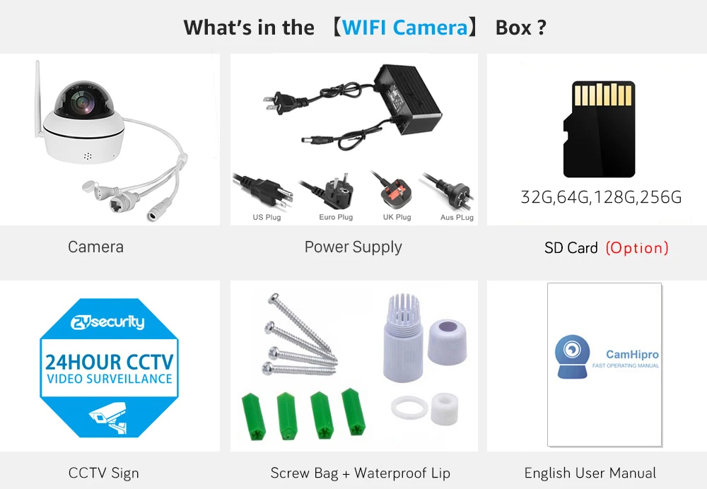 La caméra de sécurité ZYsecurity CamHi prend en charge le stockage sur carte SD jusqu’à 128 Go. Elle prend également en charge l’enregistreur onvif, avec la technologie intelligente H.265, elle pourrait économiser plus de 5 fois plus d’espace mémoire que les autres caméras.