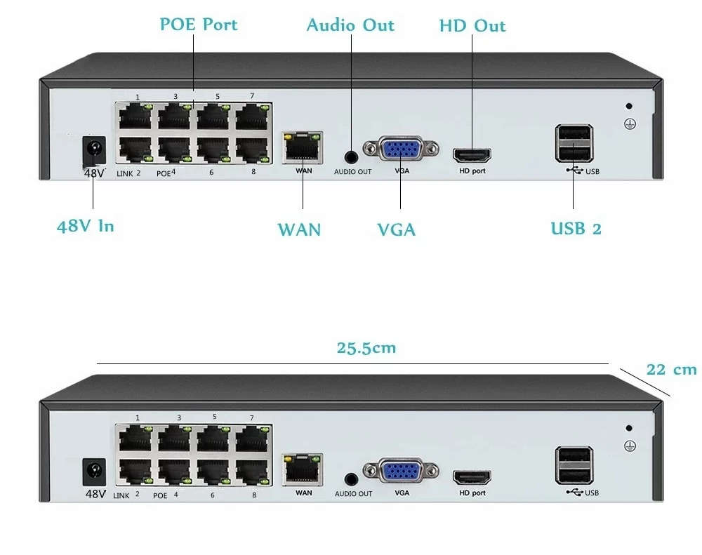 - POE: 8 ports