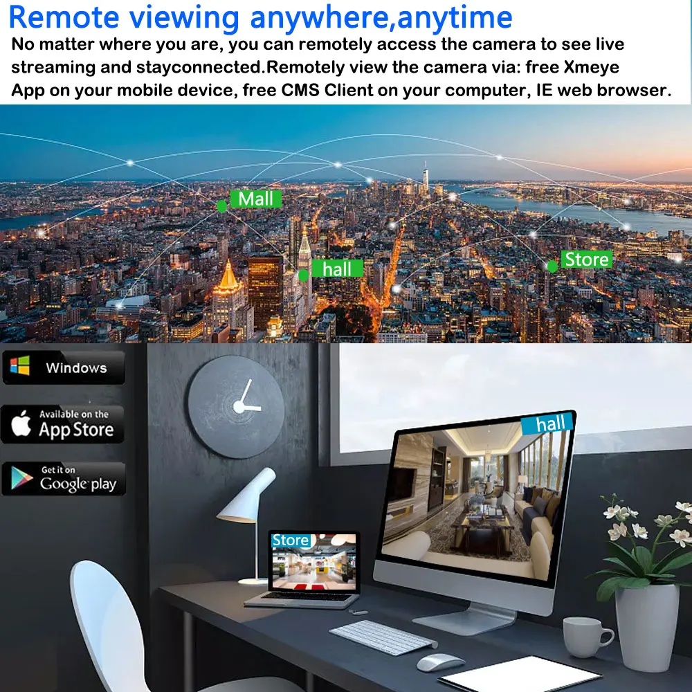 Le système de sécurité CCTV est plug and play, facile à installer, ce qui facilite le levage. Visualisation à distance partout et à tout moment.