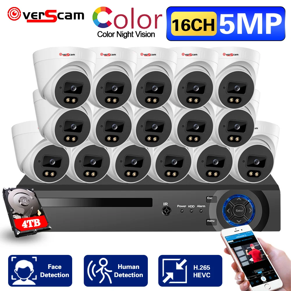 5MP Intérieur CCTV Caméra Pleine Couleur Vision Nocturne 16CH 5MP DVR Système de Caméra de Sécurité Ensemble Vidéo Surveillance AHD Système Kit 8CH