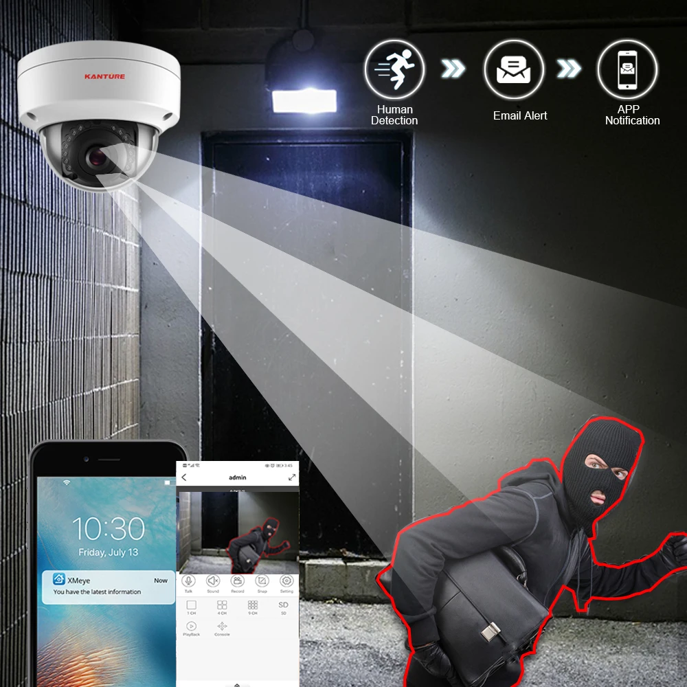 H.265 + Plus clair, la résolution HD vous offre la meilleure qualité d’image avec un débit binaire inférieur. Économisez plus d’espace de stockage, réduisez la taille des fichiers de 40% à 50%, économisez votre espace de stockage HDD et réduisez votre coût d’achat.