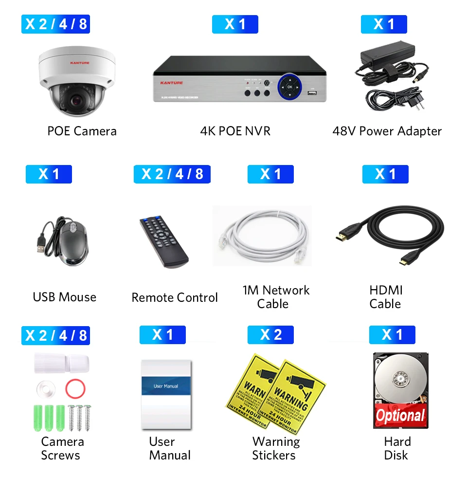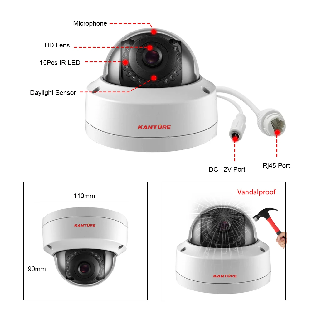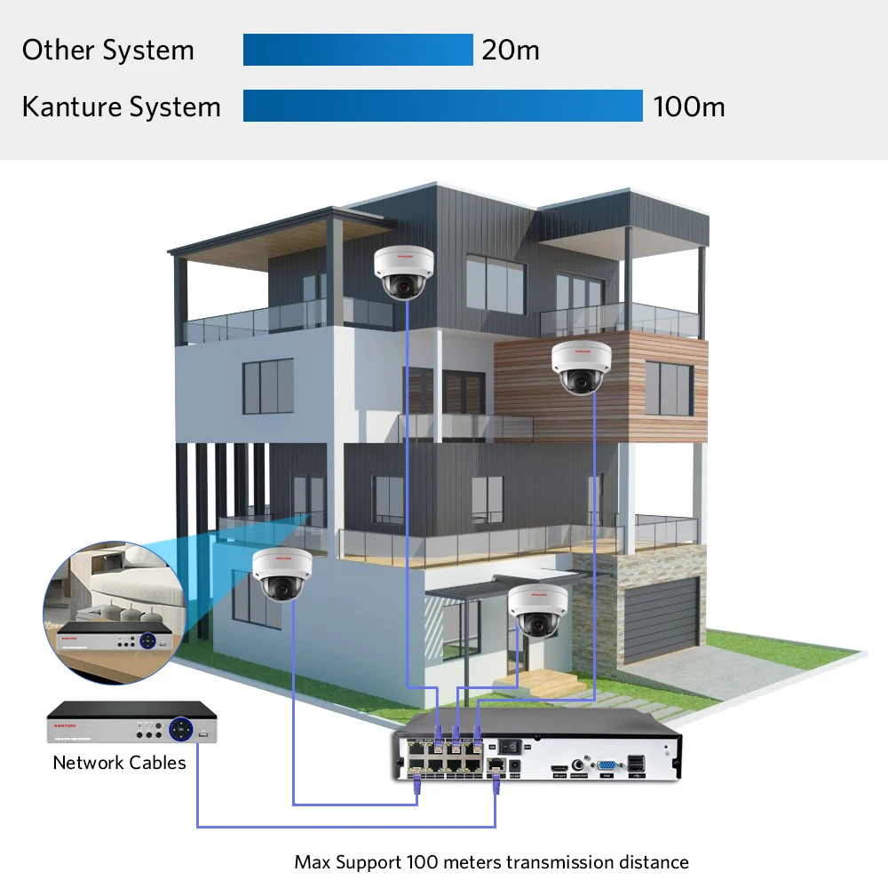 Kit de vidéosurveillance dôme intérieure et extérieure P2P, 8 canaux, POE, NVR, 4K Ai, système de sécurité avec détection faciale, enregistrement Audio, étanche de la marque Kanture