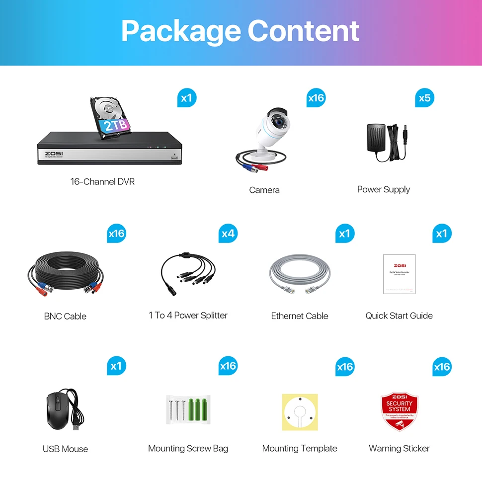 - 16ch DVR kit pour: Maison, rue, magasin, hôtel, école, garage, bureau…..