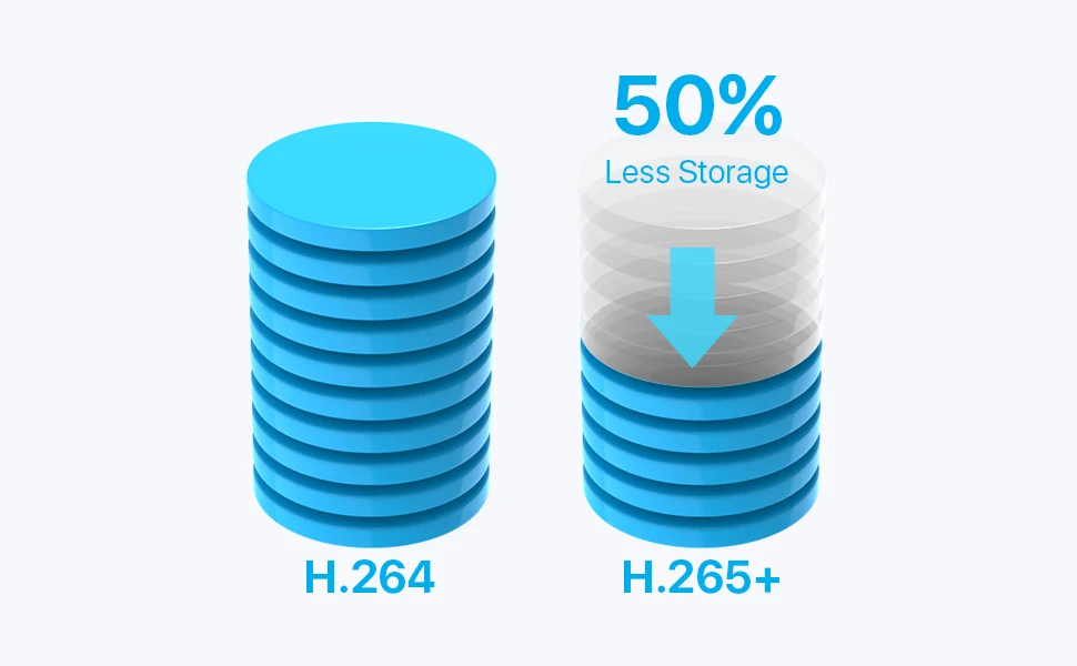 Par rapport au H.264, la technologie de compression vidéo H.265 + peut économiser jusqu’à 50% d’espace de stockage et de ressources de bande passante.