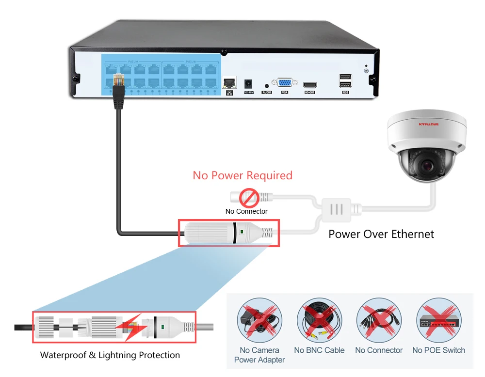 Économisez de l’argent et pratique, POE NVR = NVR + Commutateur POE