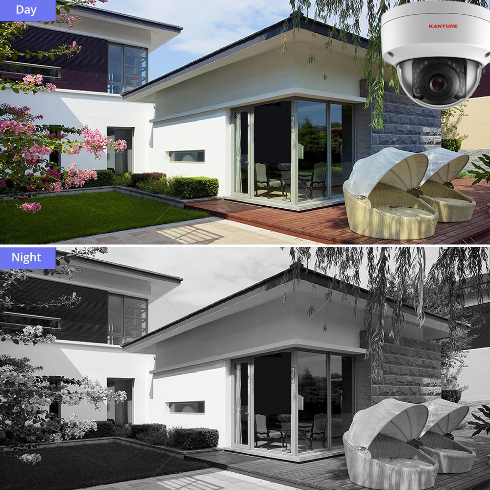Le filtre intelligent IR-Cut passe automatiquement du jour à la nuit pour réduire la diffusion des couleurs pendant la journée et améliorer la luminosité de l’image la nuit, ce qui garantit que vous pouvez obtenir des images de surveillance vives de l’aube à l’obscurité.