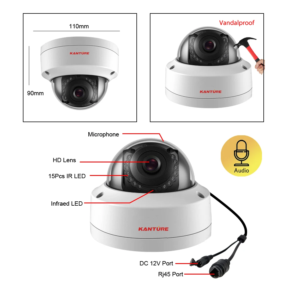 H.265 + Plus clair, la résolution HD vous offre la meilleure qualité d’image avec un débit binaire inférieur. Économisez plus d’espace de stockage, réduisez la taille des fichiers de 40% à 50%, économisez votre espace de stockage HDD et réduisez votre coût d’achat.