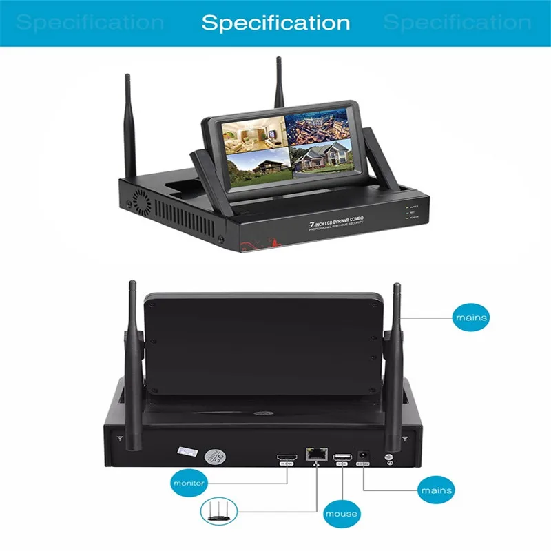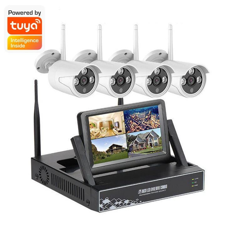 Kit ip WIFI écran 7LCD longue portée H.265 1080P 4 caméras ip wifi système de sécurité à domicile kit nvr sans fil 4ch