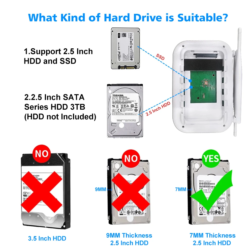 Notre Mini NVR ne prend en charge que le HDD de 7mm d’épaisseur 2.5 »pouces, si vous ne savez pas quel HDD convient au NVR, n’hésitez pas à nous contacter.