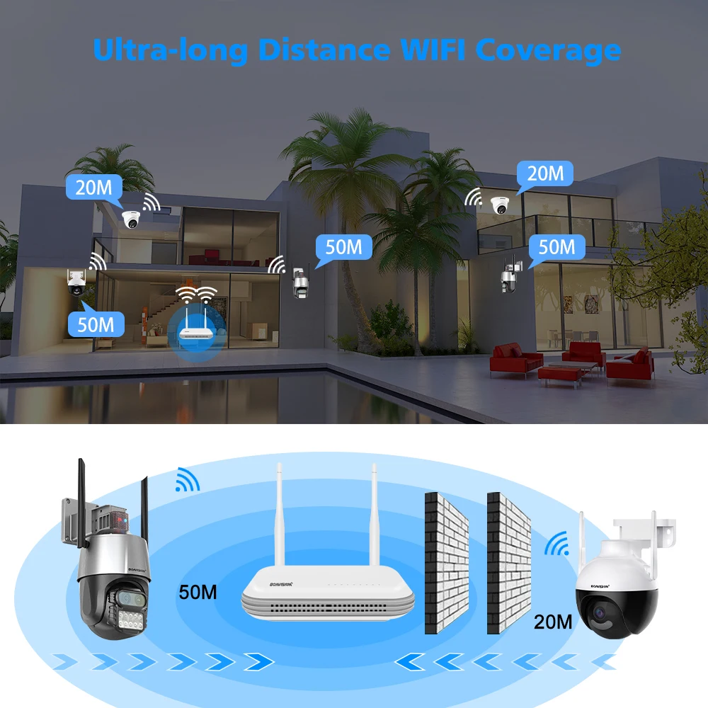 ● Couverture wifi ultra-large, la couverture wifi peut atteindre 50 mètres sans murs, 10-20 mètres avec un mur et 10 mètres avec deux murs;