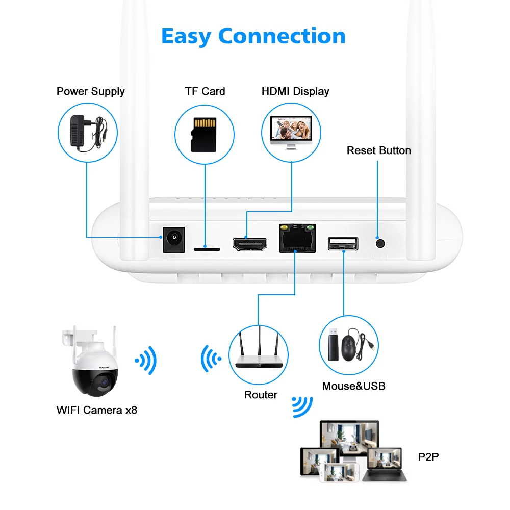 Nous vous recommandons d’utiliser le wifi NVR avec nos caméras wifi pour une meilleure compatibilité, si vous avez besoin, veuillez nous contacter!