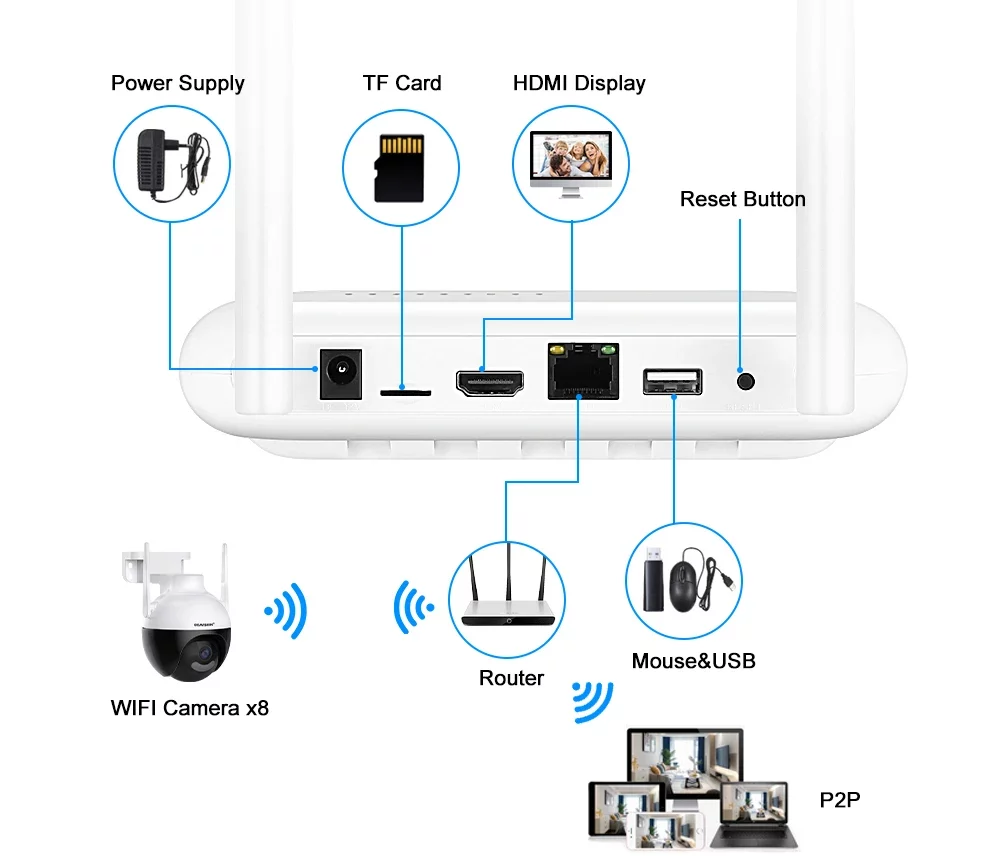 NVR sans fil 8CH 3MP / 4CH 5MP H.265 Mini Wifi